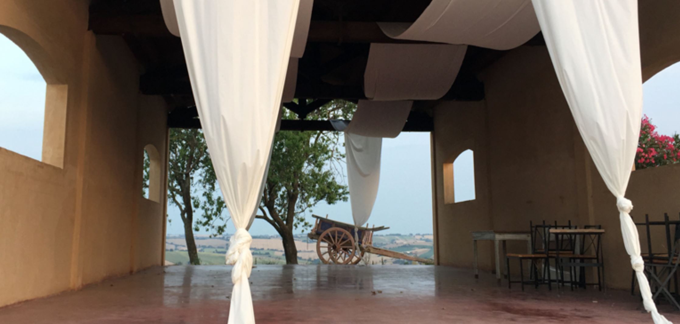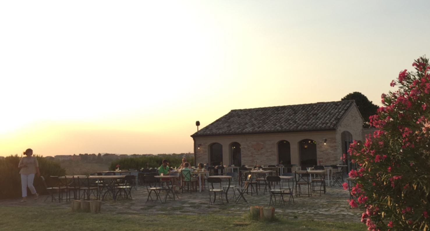 Prima di tutto la posizione, quasi un palcoscenico a 360 gradi sulla campagna marchigiana, con il San Vicino, i Sibillini, Cingoli e Filottrano attorno.